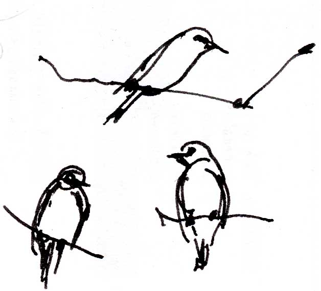I keep trying to catch up with the juncos but they’re fast… and the bluebirds continue to hang around the holes in the phone pole, providing lots of opportunity for fast pen sketches…
