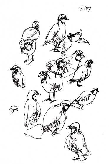 I got called out of my office by my boss just now — what’s this bird, what’s this bird in the parking lot? I snagged my pen and some paper and began to draw. It allowed me to get very close…