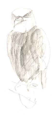 Bald eagle, derwent graphitint and wash I took a quick trip over to the Raptor Center at lunchtime. I heard a house wren singing outside the gate but never saw it, and hoped to draw a couple of hawks.