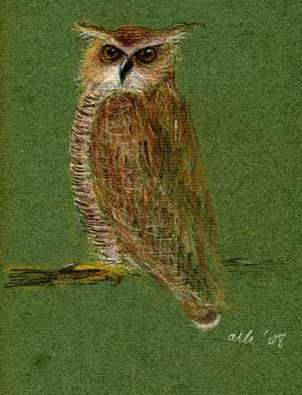 Raptor Center, again, today. This young female has been at the Raptor Center for several months but just recently joined the other great-horned owls in their enclosure… Apparently she just acquired her ear-tufts not too long ago.