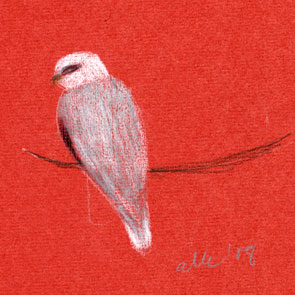 White-tailed kite, perched -- derwent coloursoft on Fabriano artistico I might as well call Monday “Raptor Day.” Only today I didn’t go to the Raptor Center; I rode my bike out along the levee west of here to see if I could find any warblers.