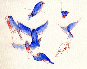Love this! That blue is just gorgeous and those birds, too, I can just imagine the flurry.