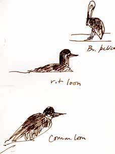 Five species of grebes, two species of loons… And the obligatory, for this time of year, marbled godwits. I also saw my first ever long-tailed weasel, which I did sketch (posted here).