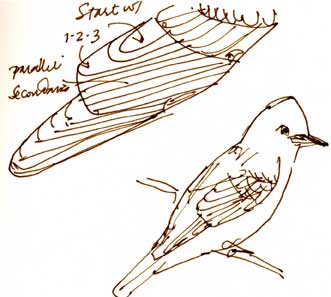 This weekend was the Central Valley Birding Symposium. We went down this morning to catch John Muir Laws’ triple bird sketching extravaganza (passerines/waterfowl/raptors). I think I made a couple of breakthrough-level discoveries — time will tell, here — but even if I didn’t it was well worth it.