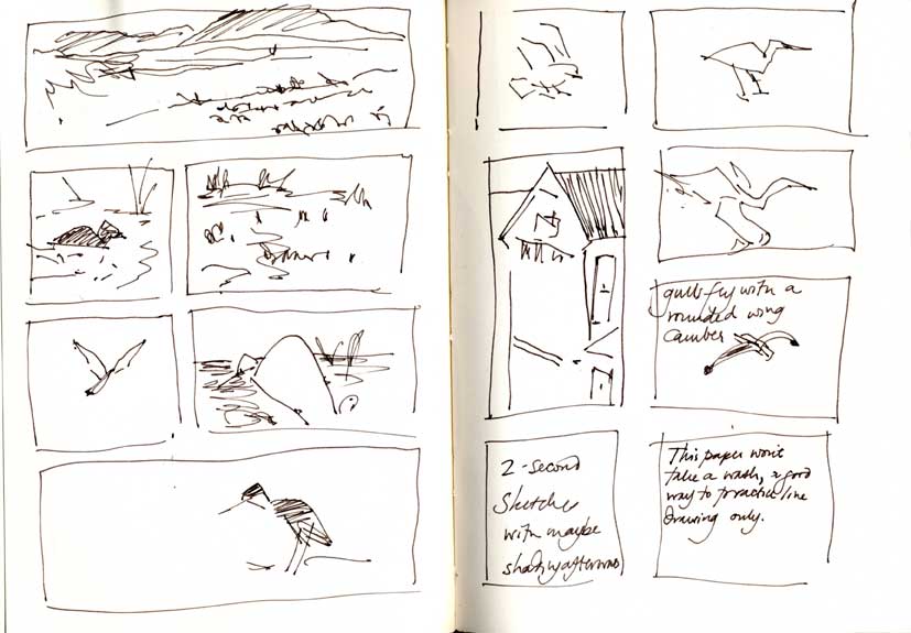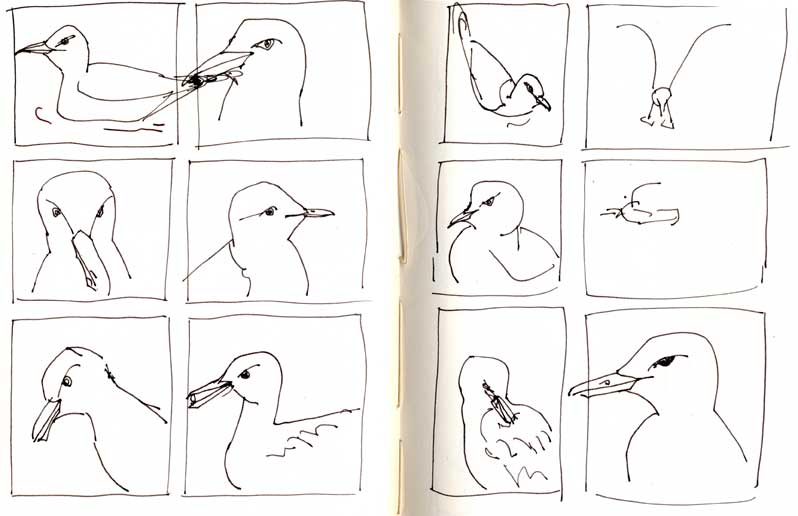 The gull pages that you showed up there (on right) are wonderful! Almost makes me want to pick up my sketchbook, but I have to clean bathrooms first. ;)