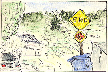 We went over to Bodega Bay yesterday and this morning where we helped Pica’s Mum pack up the house in anticipation of her great move to Maine. Pending the completion of the house sale, this will happen some time in the middle of June. This probably was my last visit to the place, so I did a few sketches in commemoration.