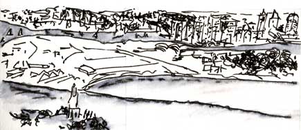 I’m just back from a quick day in San Diego, visiting my cousin Gainor who was at a board meeting for her work with the Episcopalian drug and alcohol recovery program. I’ll post a bit more about this tomorrow but we quickly took in the San Diego Museum of Art then after lunch went to Point Loma, where I sketched and she explored the lighthouse with her friend Kit.