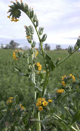 These fiddlenecks ( Amsinkia menziesii var. intermedia) are now in bloom on the south side of the alfalfa field by our house. They are a native flower found often in disturbed areas at lower elevations in California. This past Sunday we went to a picnic at a friend’s place on the top of a hill west of Winters, in the eastern foothills of the Coast Range. The fiddlenecks there are much further along and are starting to go to seed. Many of the other wildflowers there seem to blooming early this year as well.