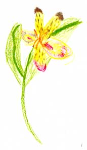 At left is an alstromeria drawn by my niece when she was seven and sent to me. Since I don’t get many drawings from my sister’s kids, this one has been on my wall since. But I see Joe’s point: they have the aesthetic best suited to little girls heavily into anything pink and delicate (which T. no longer is, spending hours and hours these days hanging around the horse barn).