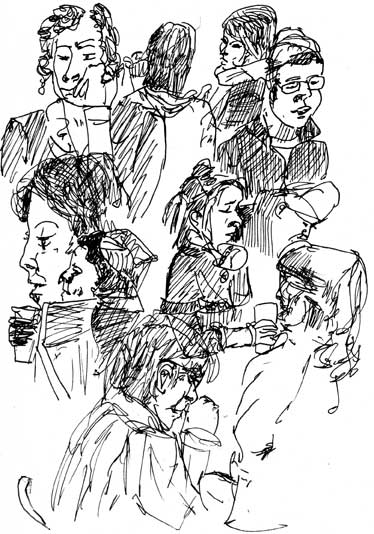 I did eventually do some of those too, though. The thing about sketching faces: you notice just how beautiful people are, how different, how complex. It leaves me at the end of this year with, how can I put it, hope. I am filled with hope. Against an awful lot of odds, I realize…