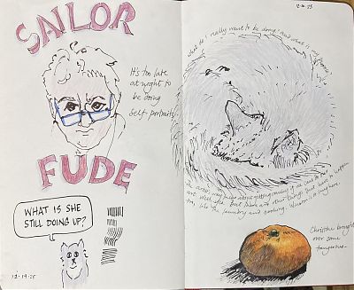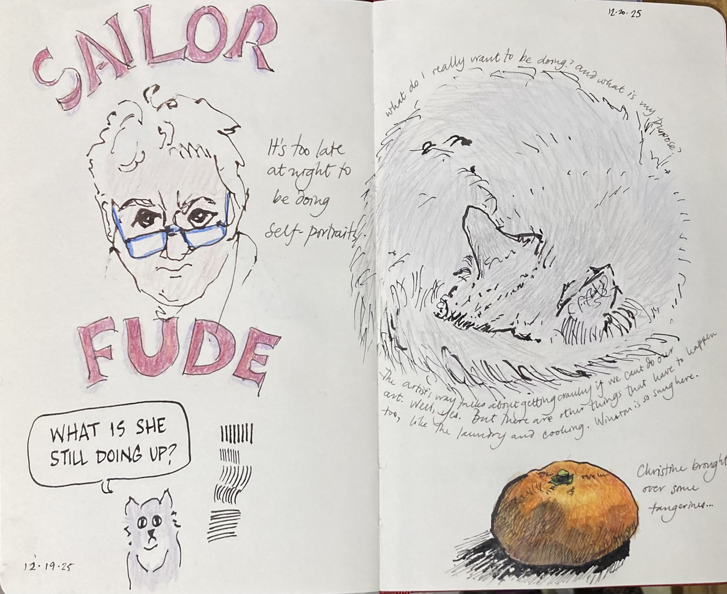 I’m playing with what I might do in the new year once I’ve finished with my Artist’s Way session, and this might work. I’m doing more and more drawings in my morning pages — cheating, I know — and here I’m landing, I think. A thick paper that will take a light wash, will stay open flat.