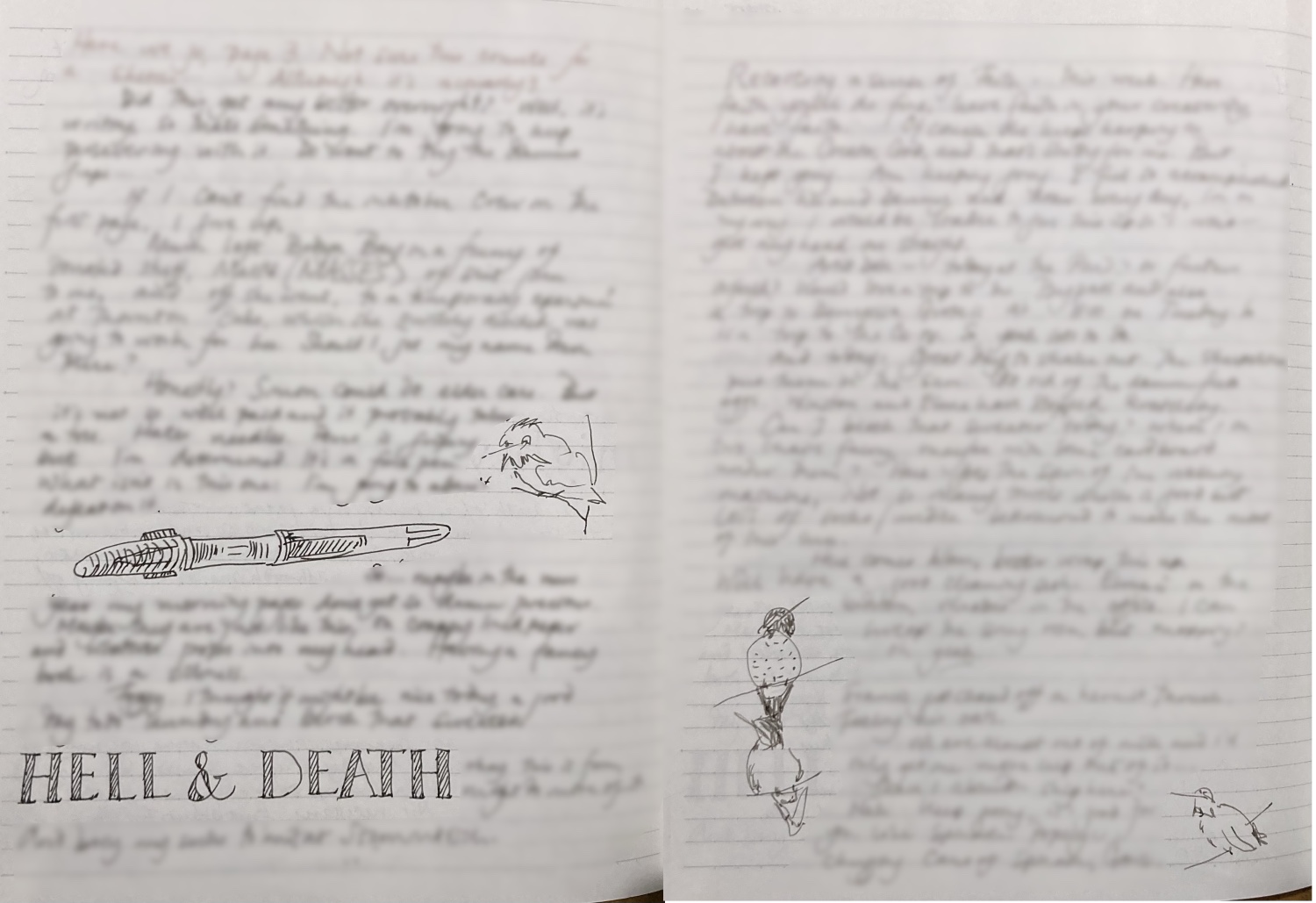 b) I don’t care that she says these should be three pages of writing only. It takes me the best part of an hour to get through three pages of longhand drivel; at least I can make it more fun by drawing too.