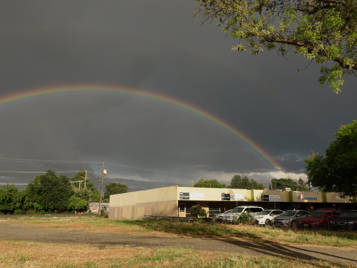 Like many others today I was glued to watching the NASA livestream of the Artemis 2 splashdown, with a bit of extra nervousness due to the concerns about the spacecraft’s heatshield. It was a perfect splashdown, but getting the astronauts back to the recovery ship was taking a while, so I went for my late afternoon walk. It was sprinkling a bit, so I grabbed my raincoat and walked where I could have a good view of the eastern sky to see this wonderful double rainbow.