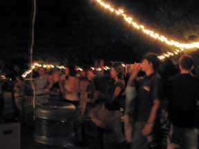 Last night we had our first party at this house, or more precisely, in the area out back which is used mostly for keeping bees, keeping beekeeping equipment, old machinery, and barrels full of old combs which congeal in these temperatures.