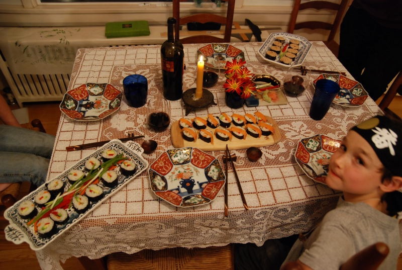 I’m in Maine, here to visit family before the snow flies. I’ve been making sushi with my nephew this evening, which I consider to be a step up from when I did this four years ago… photos will appear when I can figure out how to do it.