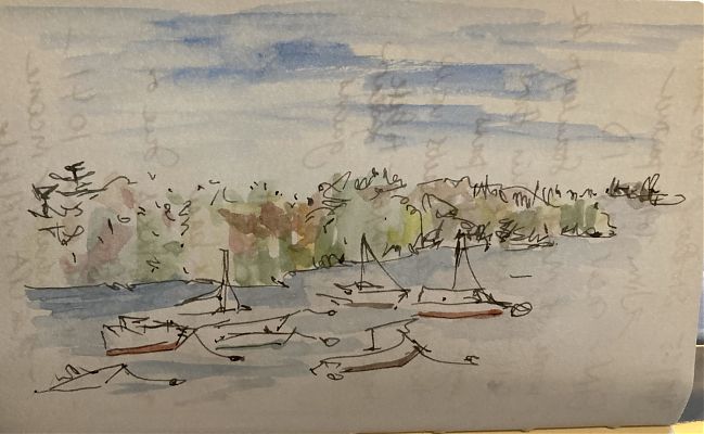 Yesterday we took my mother to Paul’s Marina on Mere Point Road in Brunswick. We sat outside and watched the ospreys fishing, the boats turning into the incoming tide, and my mother greedily eating two scoops of peanut butter pie ice cream.