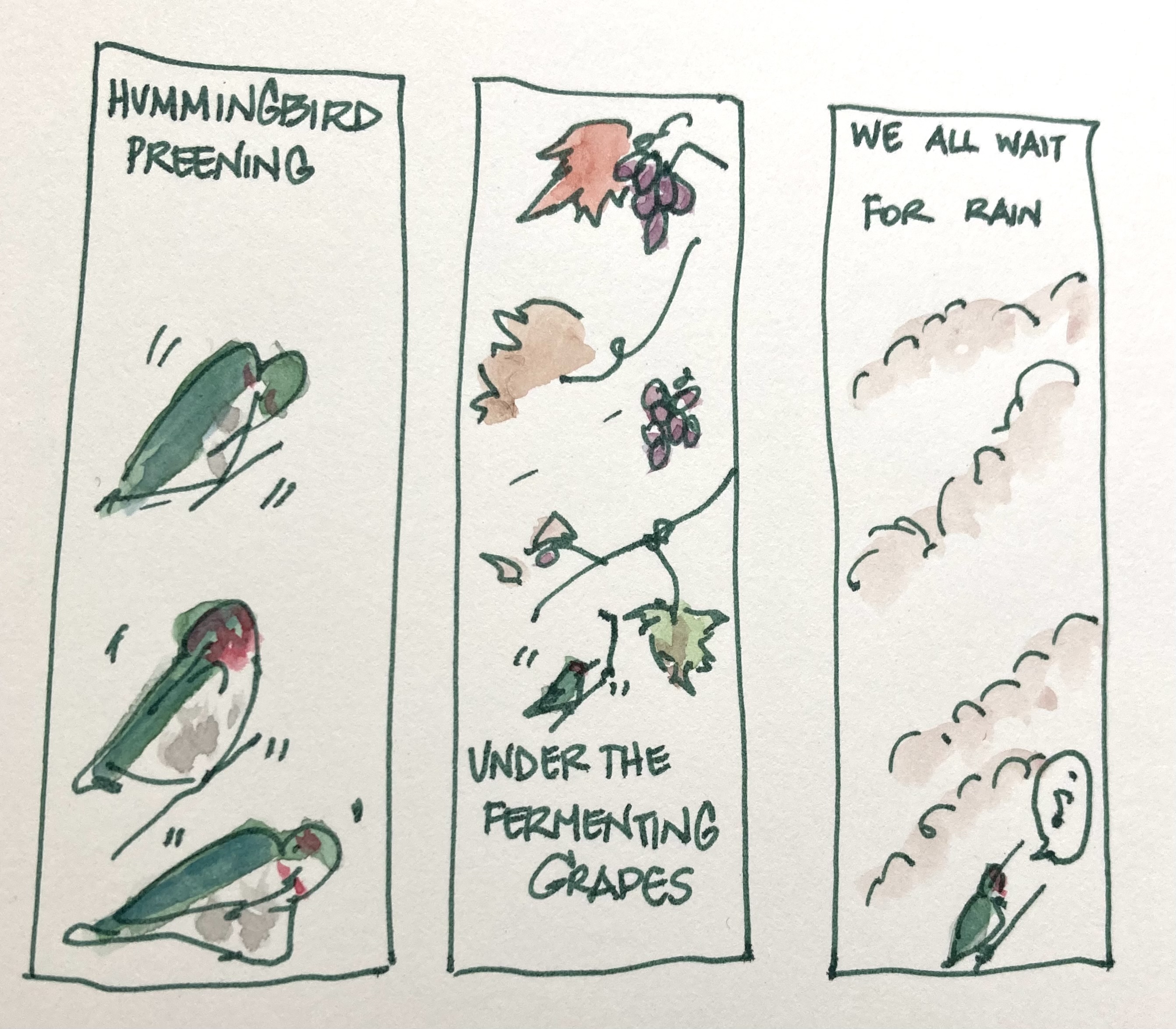 Nature journaling is a practice I return to intermittently and every time I do I wish I’d been more consistent. Yesterday I was able to take a workshop by Grant Snider on poetry nature comics; this intersection was an intriguing challenge for me. Naturally I tackled hummingbirds, since that is very much where my interest is these days.