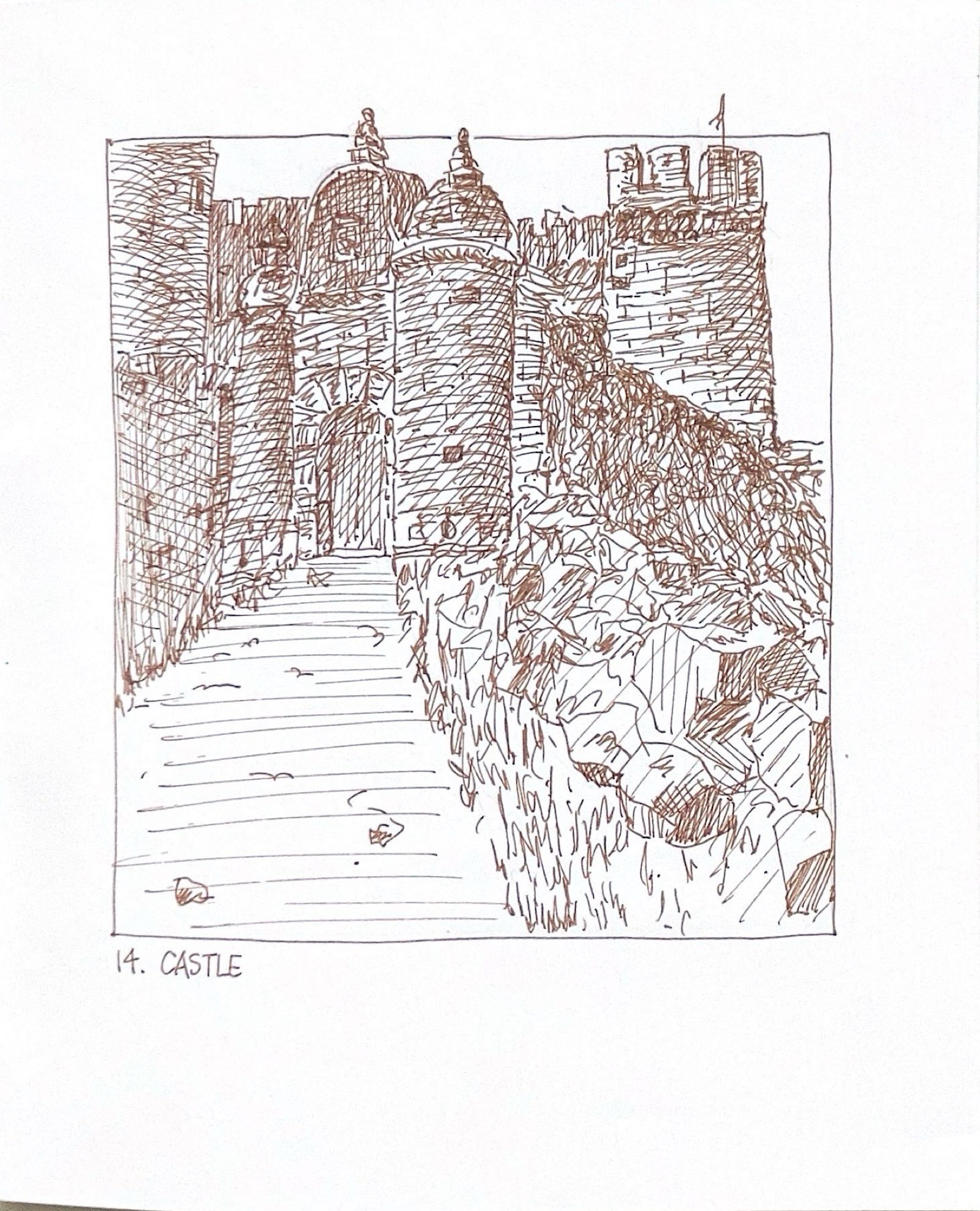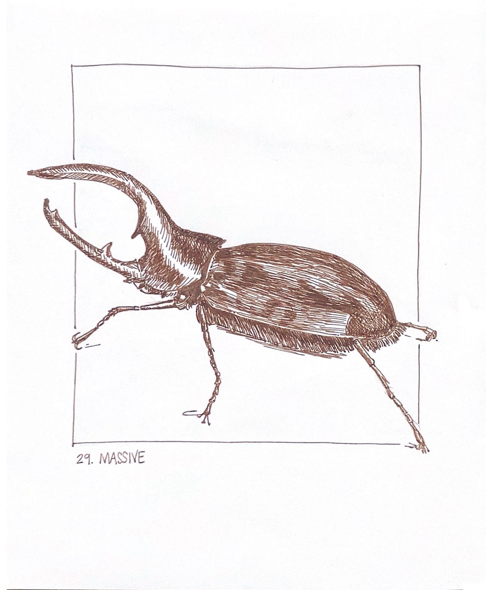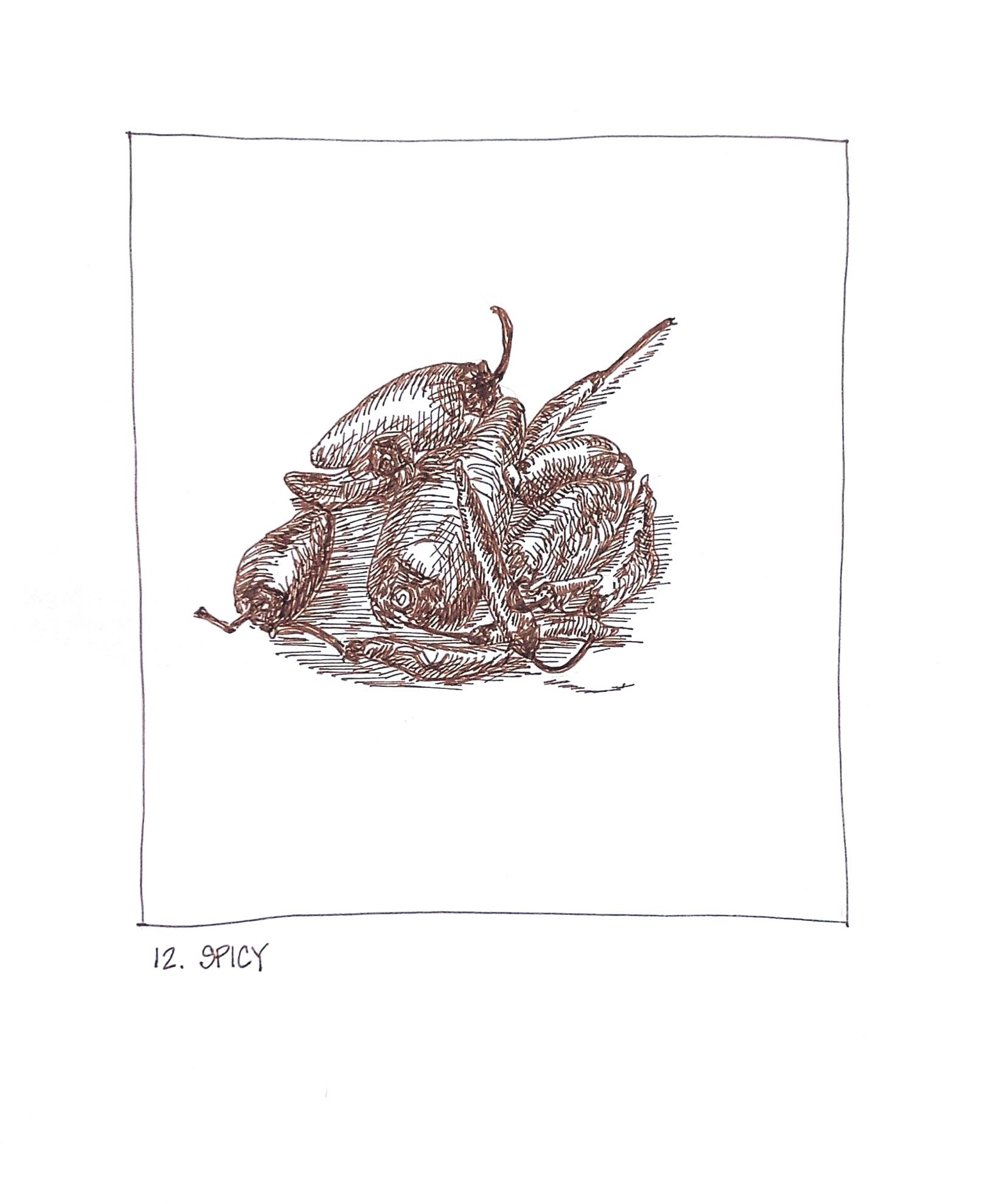 I decided to take the opportunity last year to use Inktober as a way of exploring hatching and to improve my skill. With the constraints of a 5” x 5.25” rectangle, and a fine-nib Pilot Metropolitan fountain pen loaded with De Atramentis Document Ink (brown), for the first time, I followed the official prompts exactly.