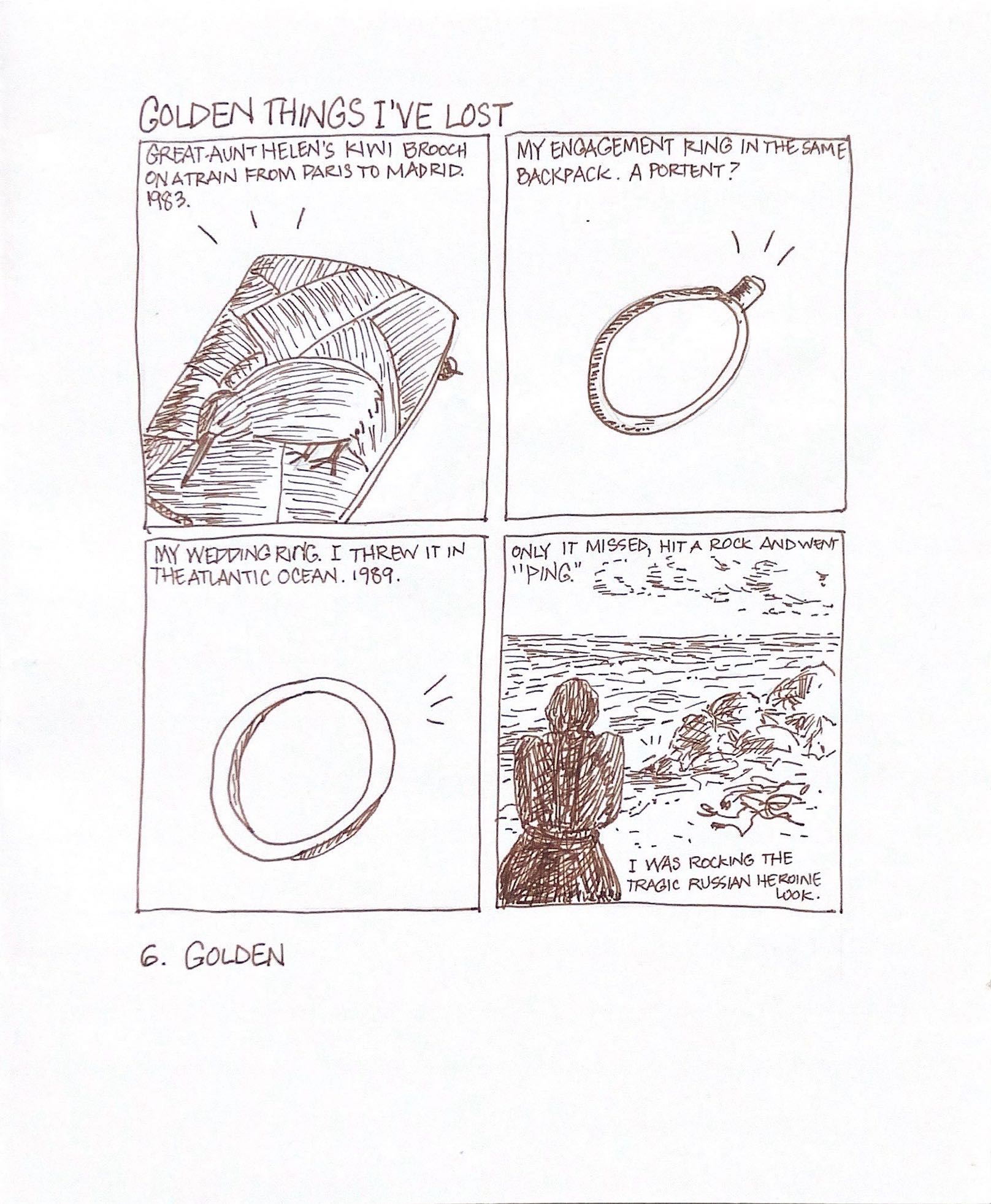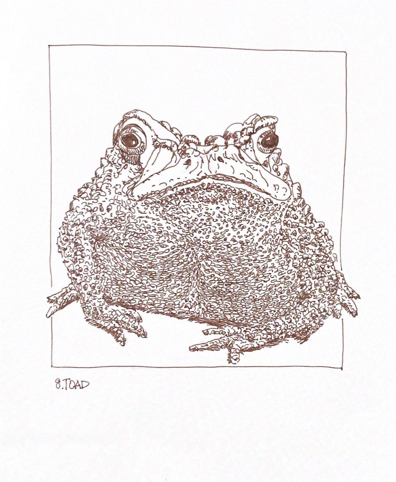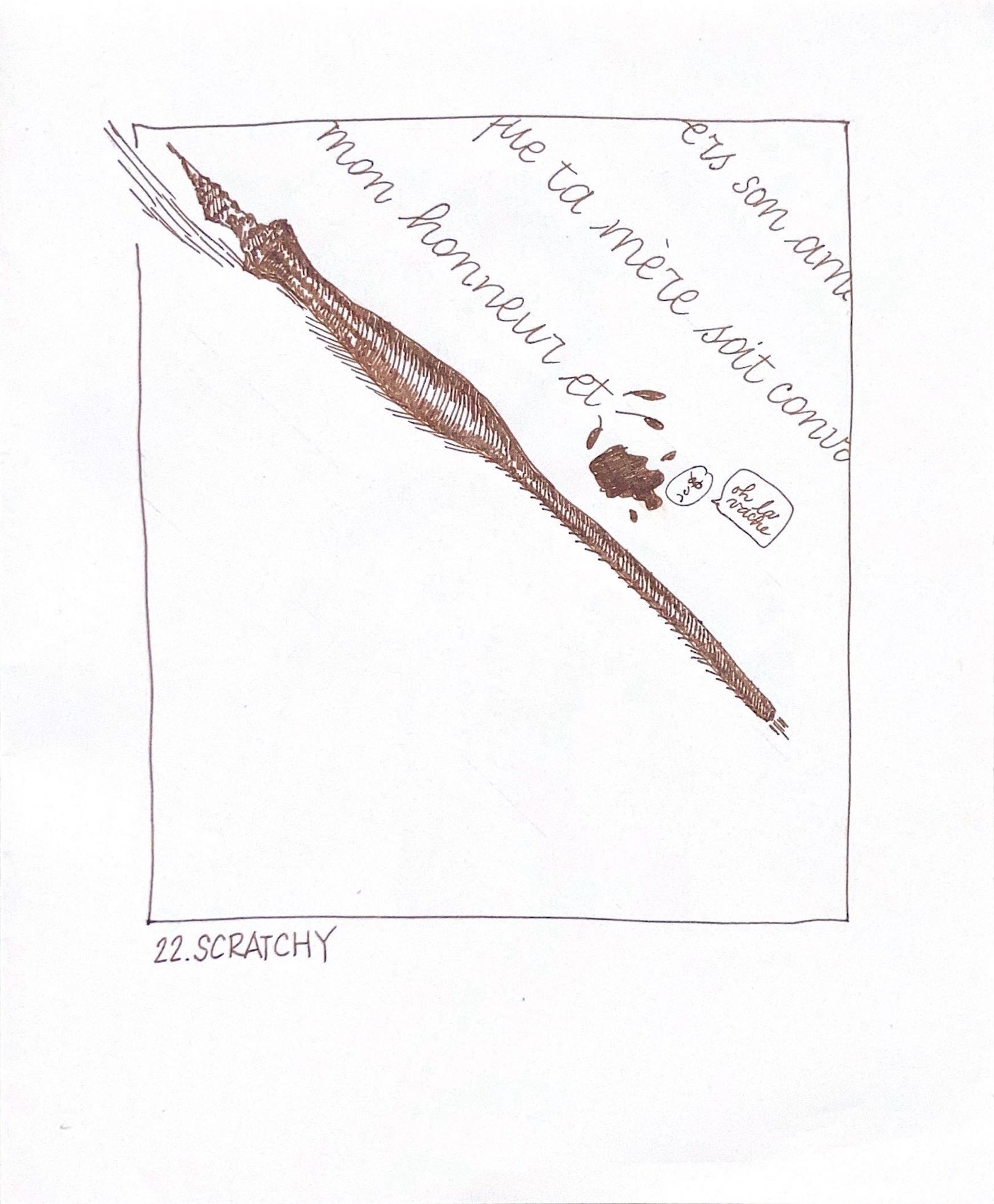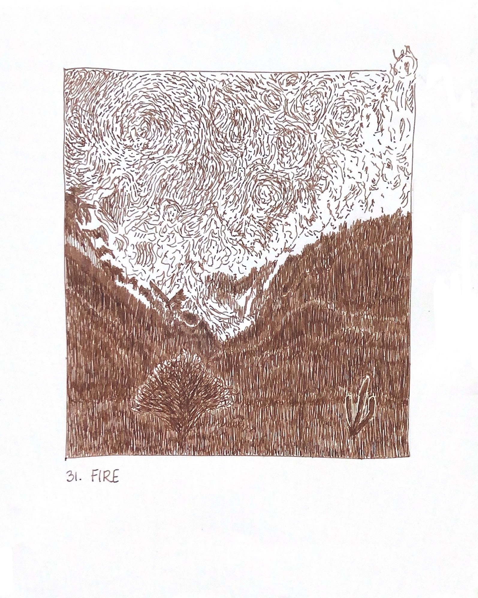 I decided to take the opportunity last year to use Inktober as a way of exploring hatching and to improve my skill. With the constraints of a 5” x 5.25” rectangle, and a fine-nib Pilot Metropolitan fountain pen loaded with De Atramentis Document Ink (brown), for the first time, I followed the official prompts exactly.