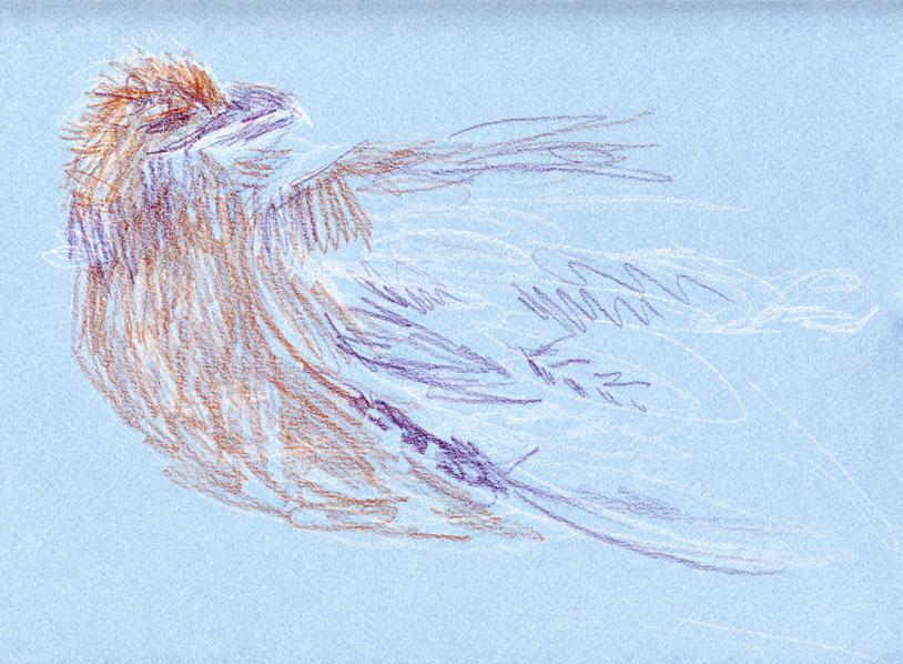 One of my coworkers came in saying there was a hawk by the tracks that looked as though it had been hit by a train. They went out to look to see if it was fresh enough for a necropsy. Alas no, but they offered it to me anyway for a quick sketch…