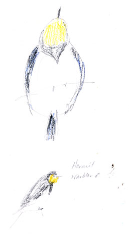 Stormy today. There was movement outside. Yellow warbler and hermit warbler. I haven’t seen one of these for ages.