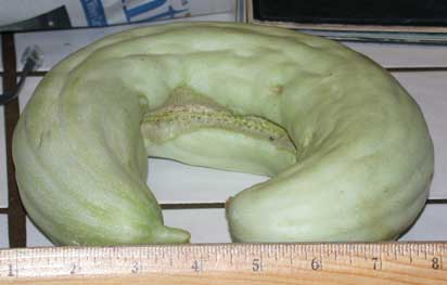 I arrived home to a blistering heatwave and some interesting vegetables. I have no idea what this is. It’s in the Armenian cucumber patch but it looks like it got crossed with a honeydew melon.