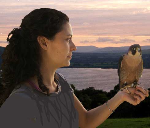 I’ve had this really big critical push at work to get a project finished, but yesterday at three we were lured out into the sunshine by shrieks of delight. A falcon with jesses, a bell and a transmitter had just wandered on into the student lab, and Tamara had scooped it up and was looking like something out of a fantasy story set in Scotland.