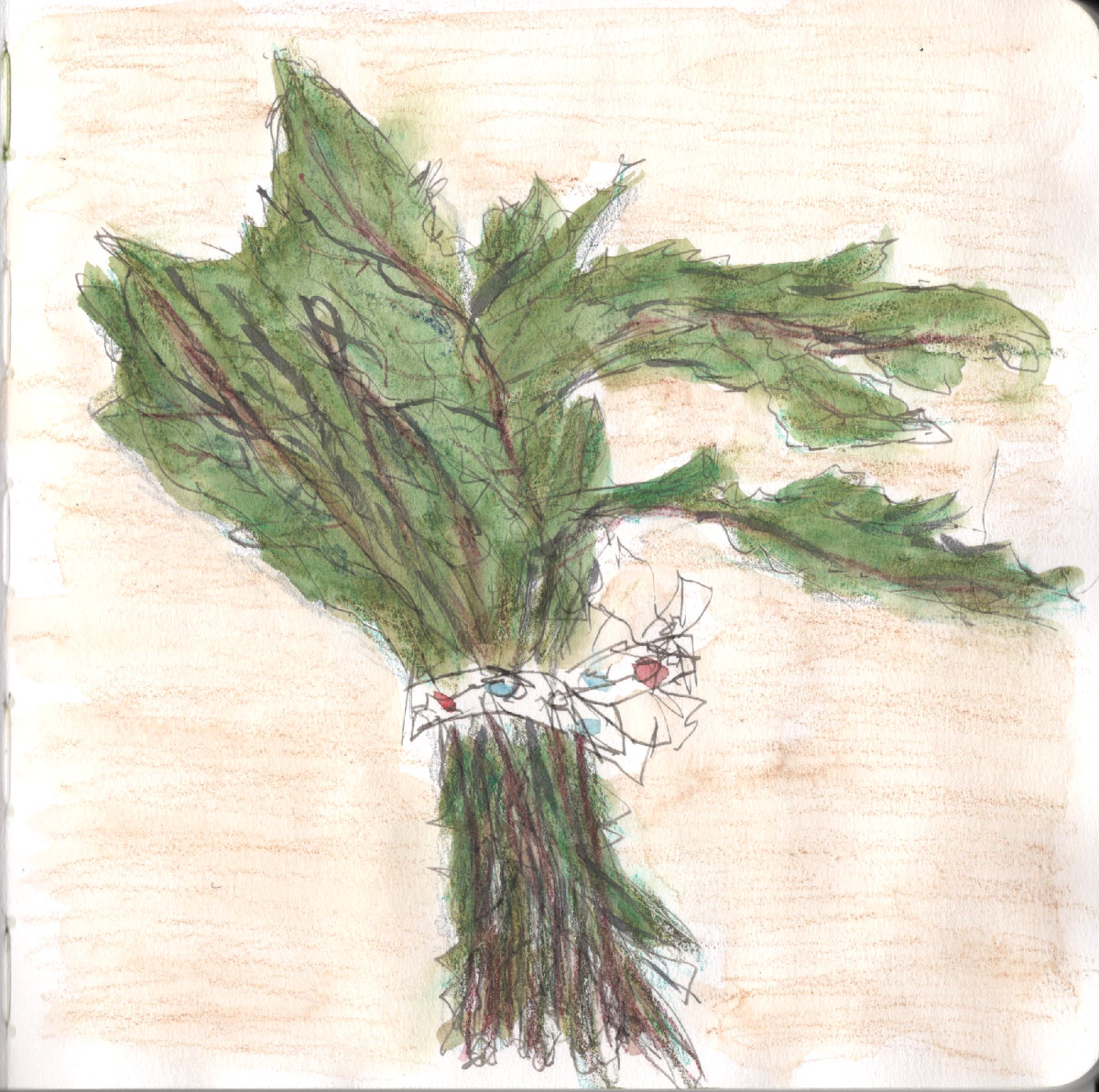 Fall chilly weather is here which means it is time to be making weekly soups. We do our grocery shopping on Tuesday mornings which means it’s a good time to draw vegetables. Here I’ve sketched the dandelion greens that made it into today’s soup. I am drawing this on Stillman & Birn Alpha paper which is pretty thin, so I’m starting to experiment with washes over watercolor pencil rather than using straight watercolor.